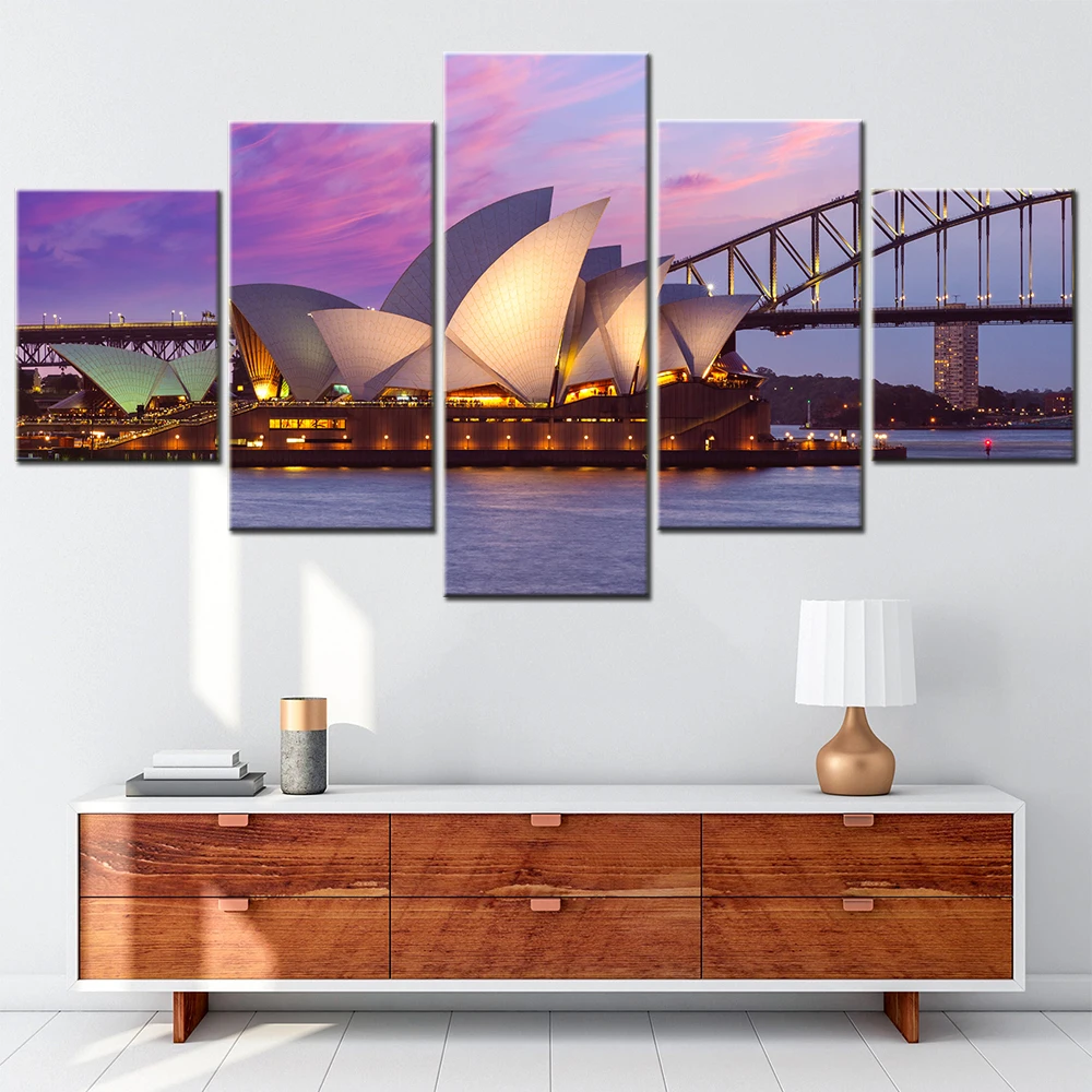 5 Panel Modular Wall Art Home Decoration Accessories Sydney Opera House Picture Aesthetic Room Decor Canvas Painting Photo Frame