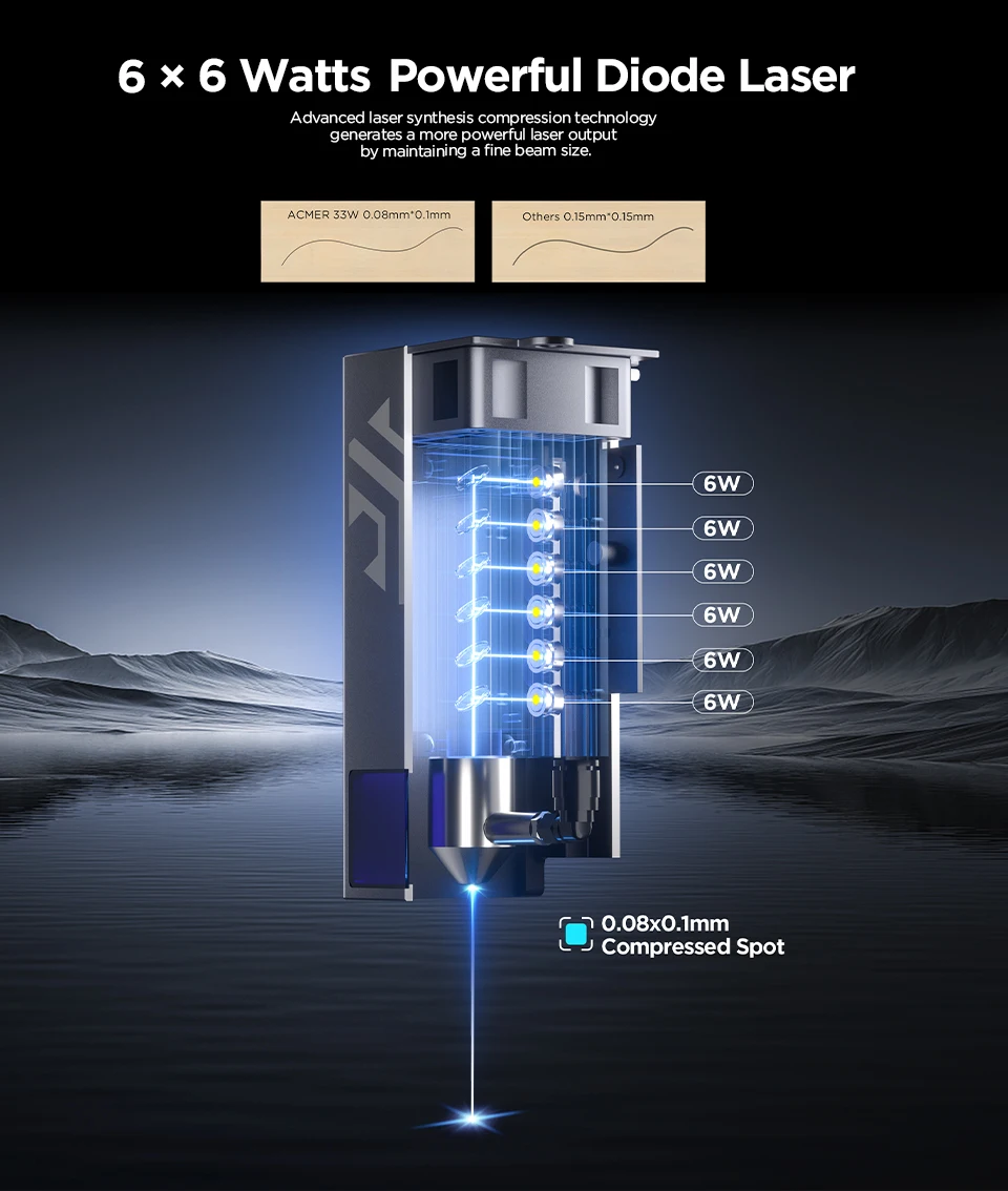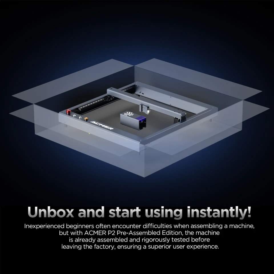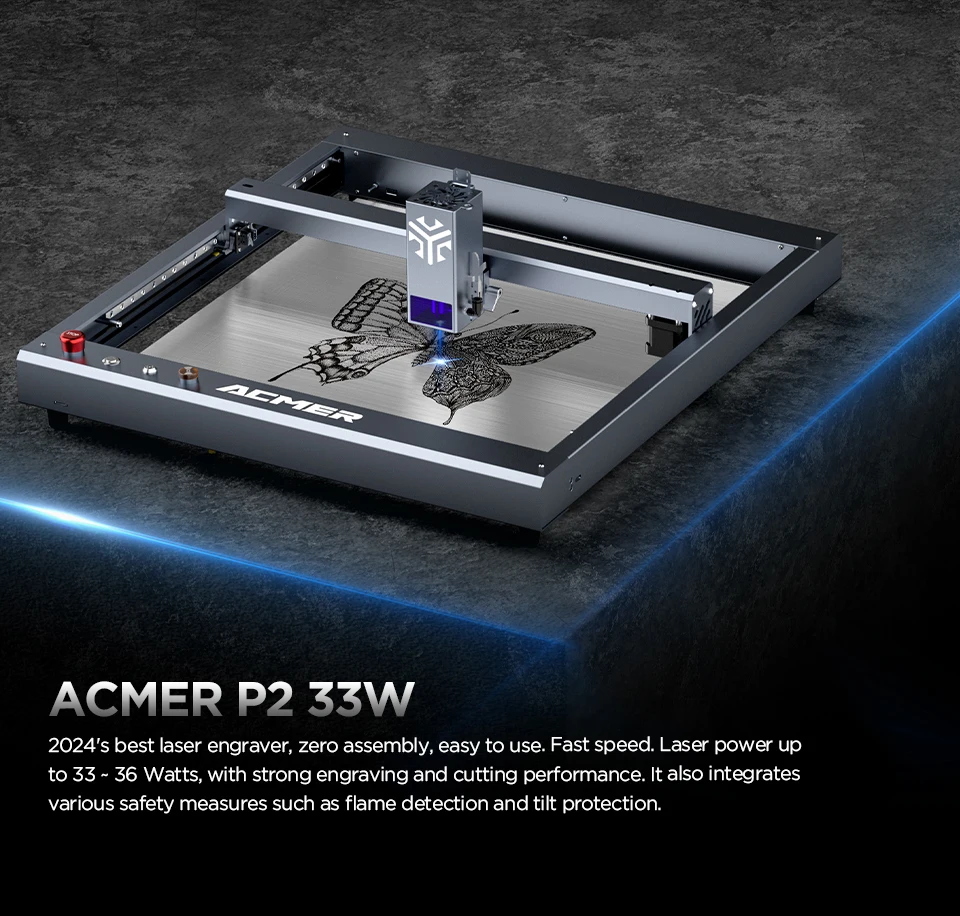 ACMER Laser Engraver P2 33W with Air Assist Industrial Rails WIFI Laser Engraving Cutting Machine Carve Glass Wood for Business