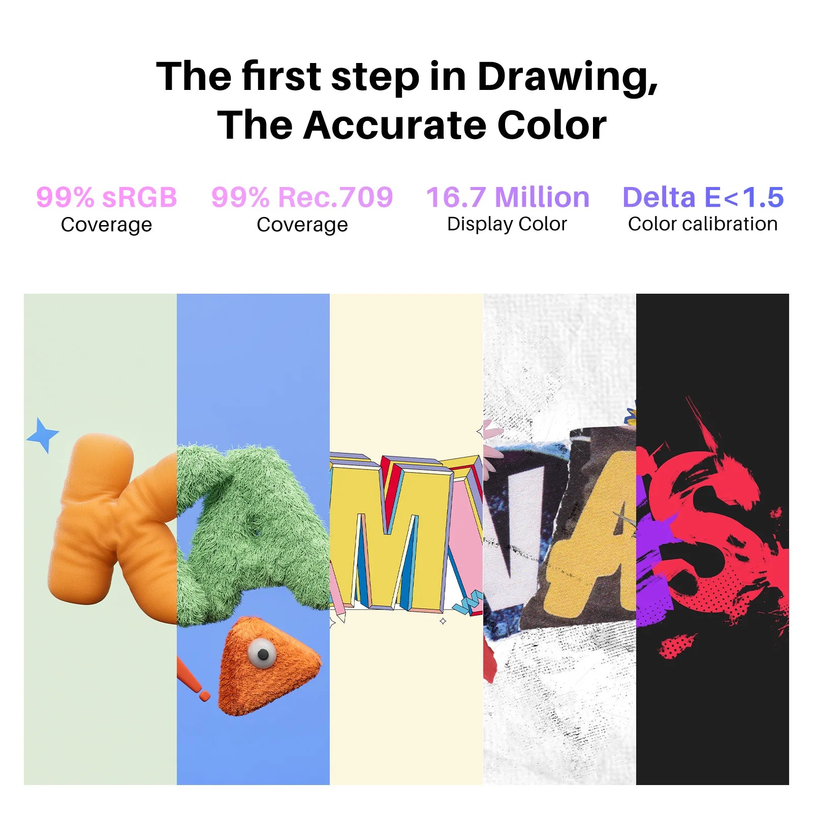 Huion Kamvas 13 Gen 3 Drawing Display 13.3" Art Tablet+Anti-sparkle Canvas Glass, 99% sRGB, PenTech 4.0 16384 Pen Pressure