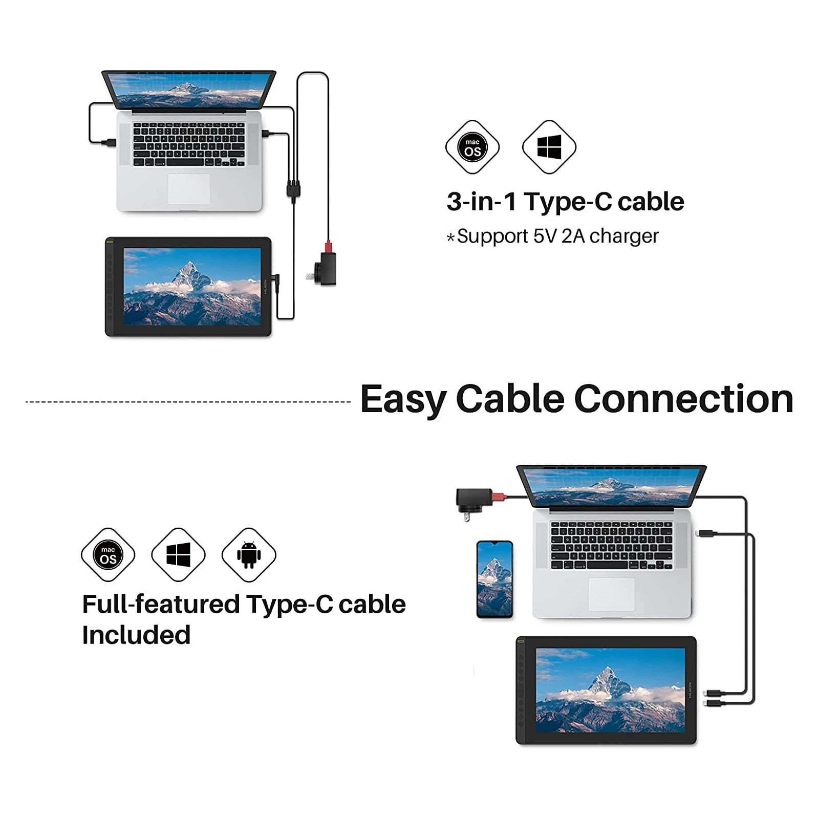 Connectivity Technology: 3-in-1 cable with HDMI, full-featured Type-C cable