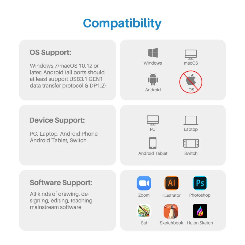 OS Compatibility: Windows/macOS/Android(USB3.1 DP1.2)