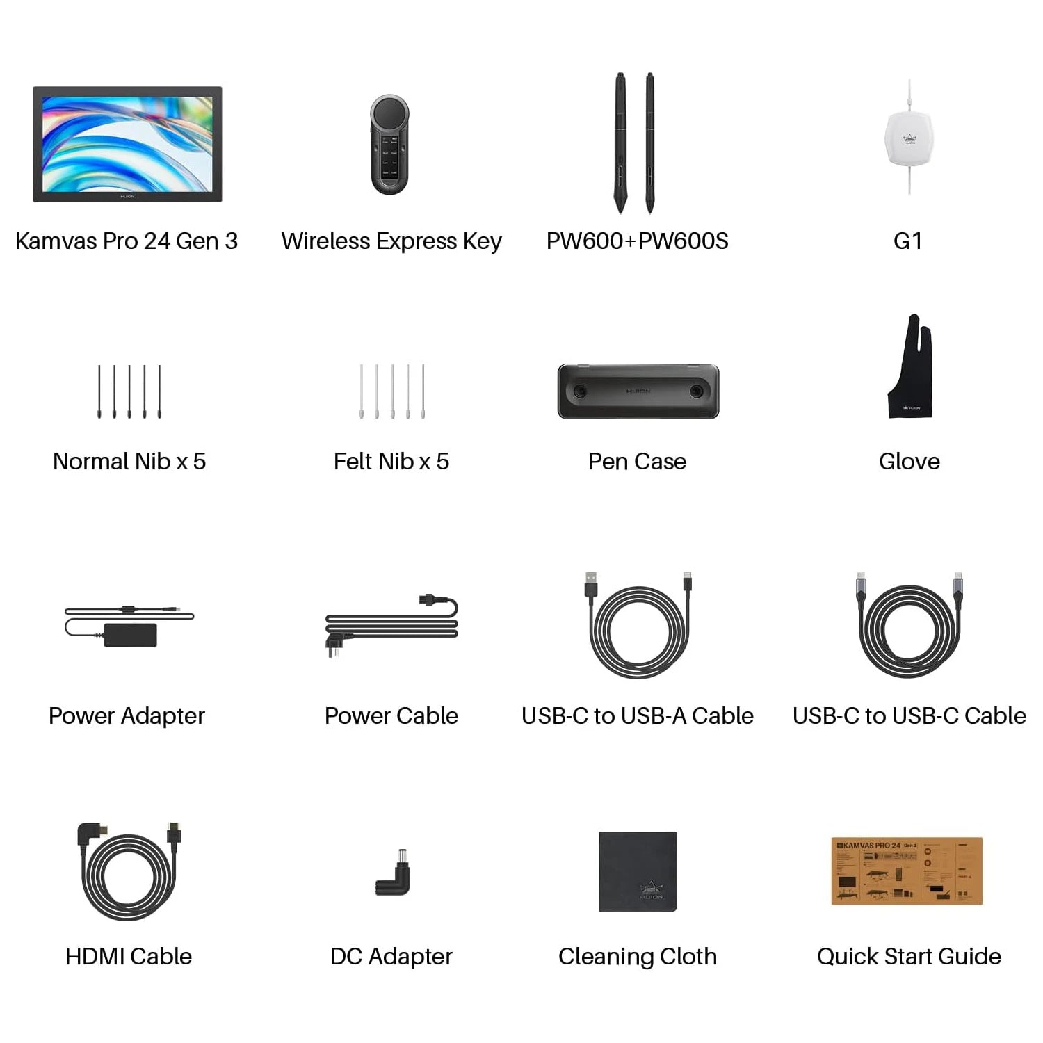 Huion Kamvas Pro 24 Gen 3 Graphics Tablet Touch Screen 4K Display, PenTech 4.0 Dual-Pen 16K Levels Pressure Pen Canvas Glass 3.0