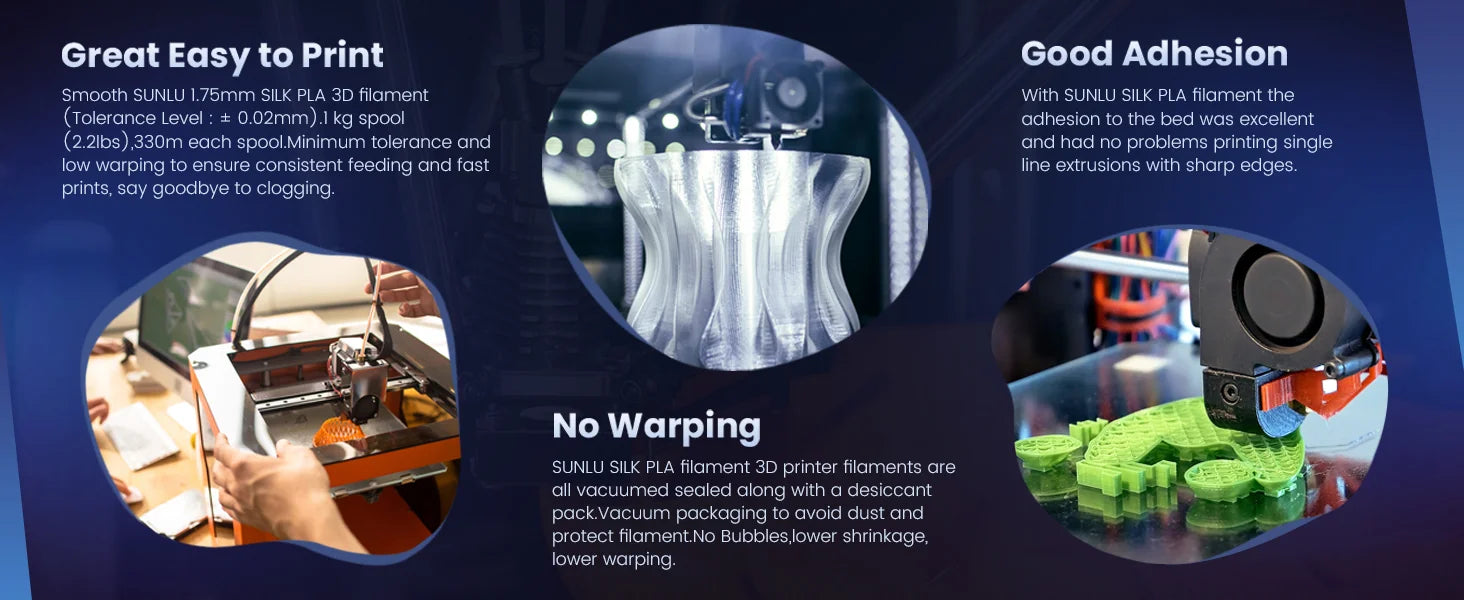 ⑥【Vacuum Packed & No Bubbles】JAYO SILK PLA filament 3D printer filaments are all vacuumed sealed along with a desiccant pack.Vacuum packaging to avoid dust and protect filament. No Bubbles,lower shrinkage, lower warping.