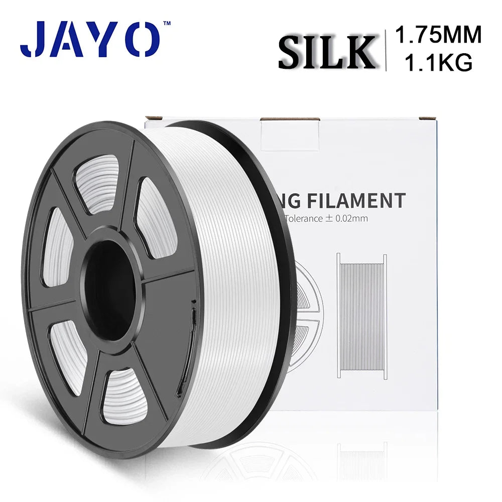 JAYO 3D Printer Silk Filament,Shiny Silk PLA Filament 1.75mm, Smooth Silky Surface, Great Easy to Print for 3D Printers, Dimensional Accuracy +/- 0.02mm, Silk Silver 1.1KG