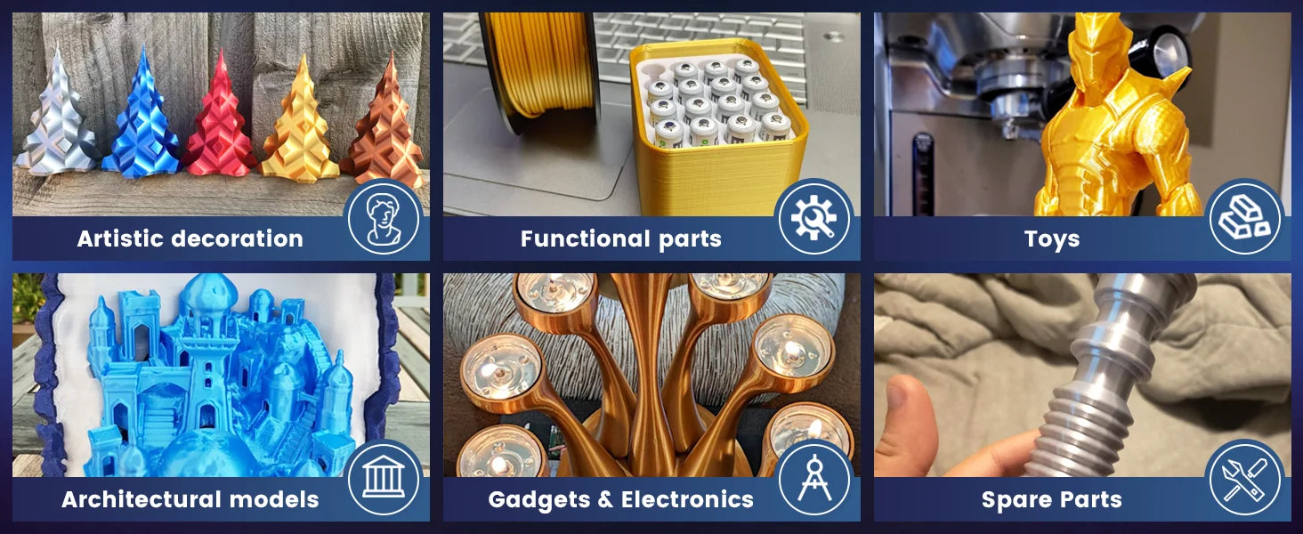 ③【High Toughness Silk PLA+】 Silk PLA+ 3D printer filament boasts toughness 50 times higher than standard PLA. It exhibits characteristics of flexibility without breaking, impact resistance without shattering, and sturdy resilience to compression.