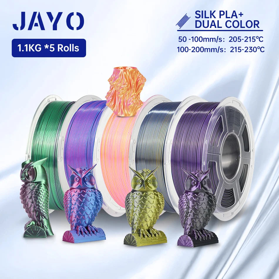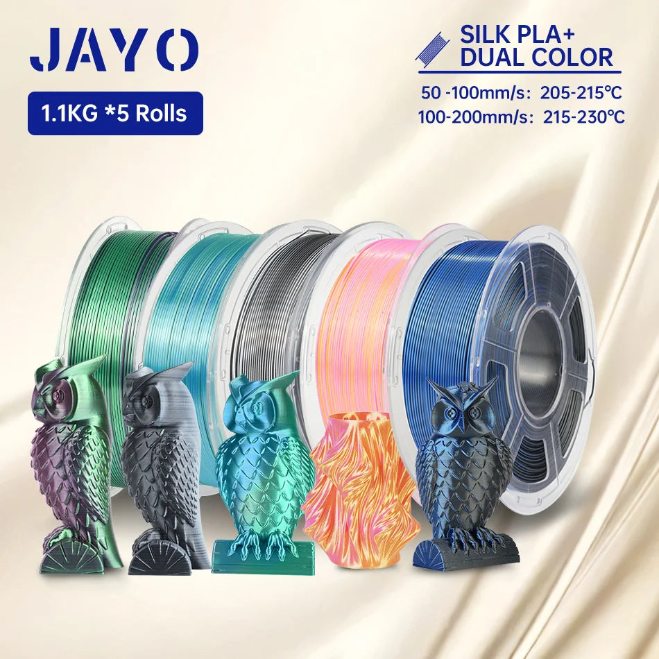 JAYO SILK PLA + Filament 1.75MM PLA 3D Filament 1.1KG for FDM 3D Printer Neatly Wound Shiny 3D Printing Material 5Rolls