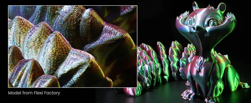 【Dual Color Silk PLA Plus】JAYO Dual Color Silk PLA Plus 3D Printer Filament, a single 3D filament, offers a dual color experience. With a 360° rotation, it reveals prints with various color combinations. Printed creations with varying colors from different angles.