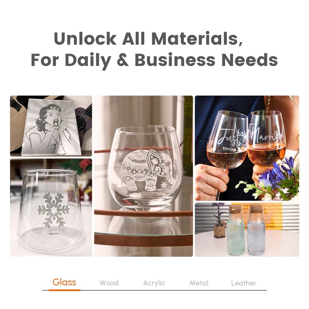 【Explore More Fun】 AlgoLaser DIY KIT Laser Engraver can engraving cylinders by add to rotary rollers. Unleash your creativity on over one hundred materials including paper, bamboo, wood, leather PCB board, aluminum oxide, metal, glass, etc. The creation of gifts can not lack it.