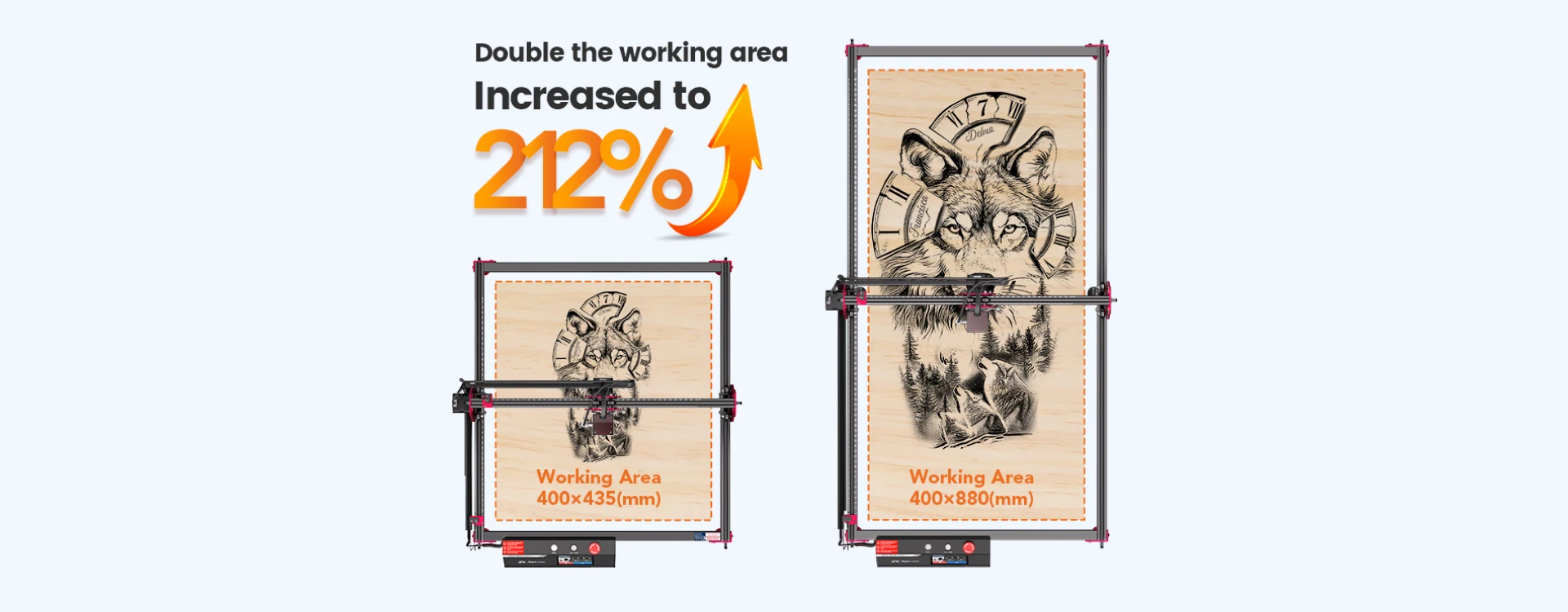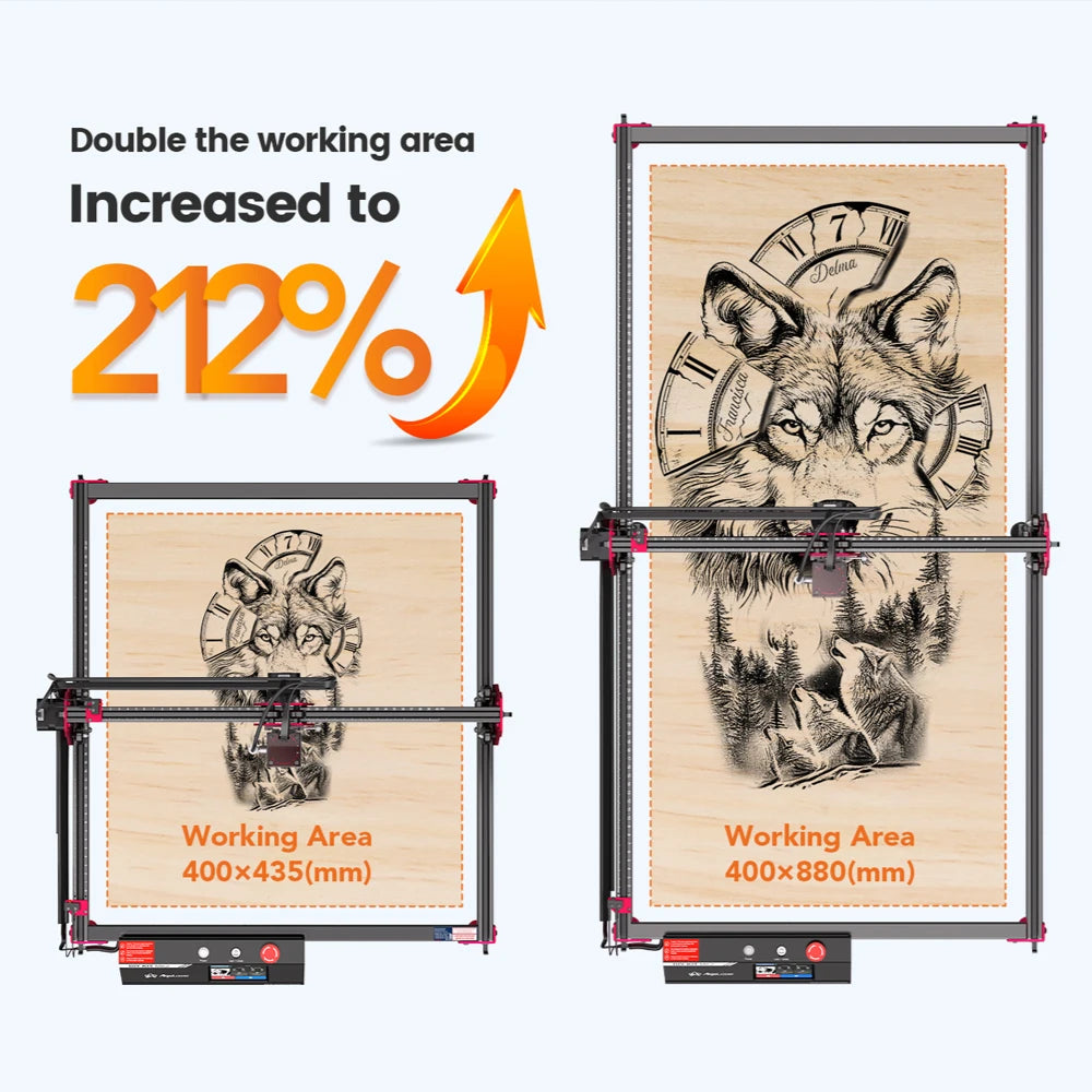 Engraving Area: 400x400mm,400*400mm(Basic) 400*850mm(with exension kits)