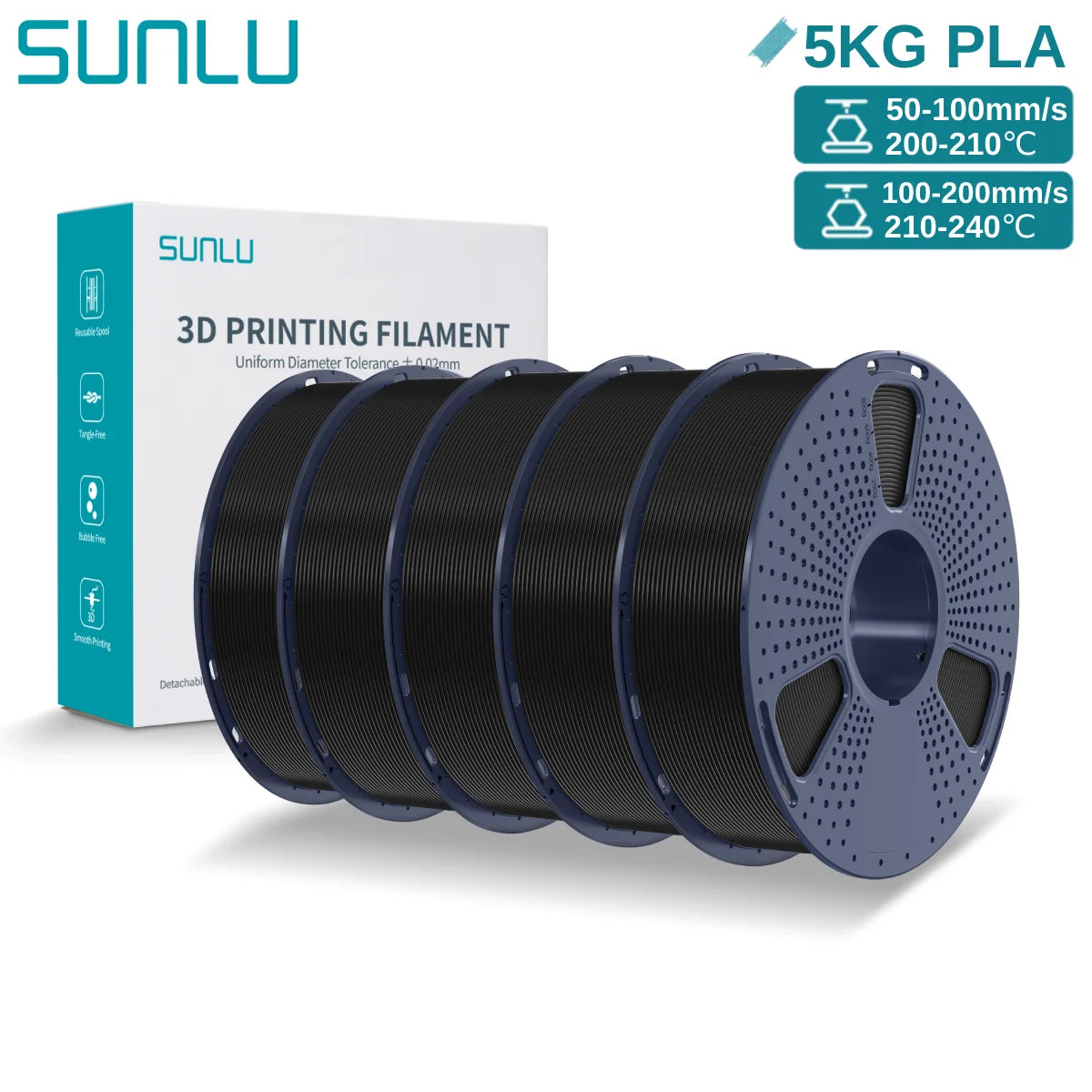 Features 1: SUNLU 5KG Pla 3D Filaments