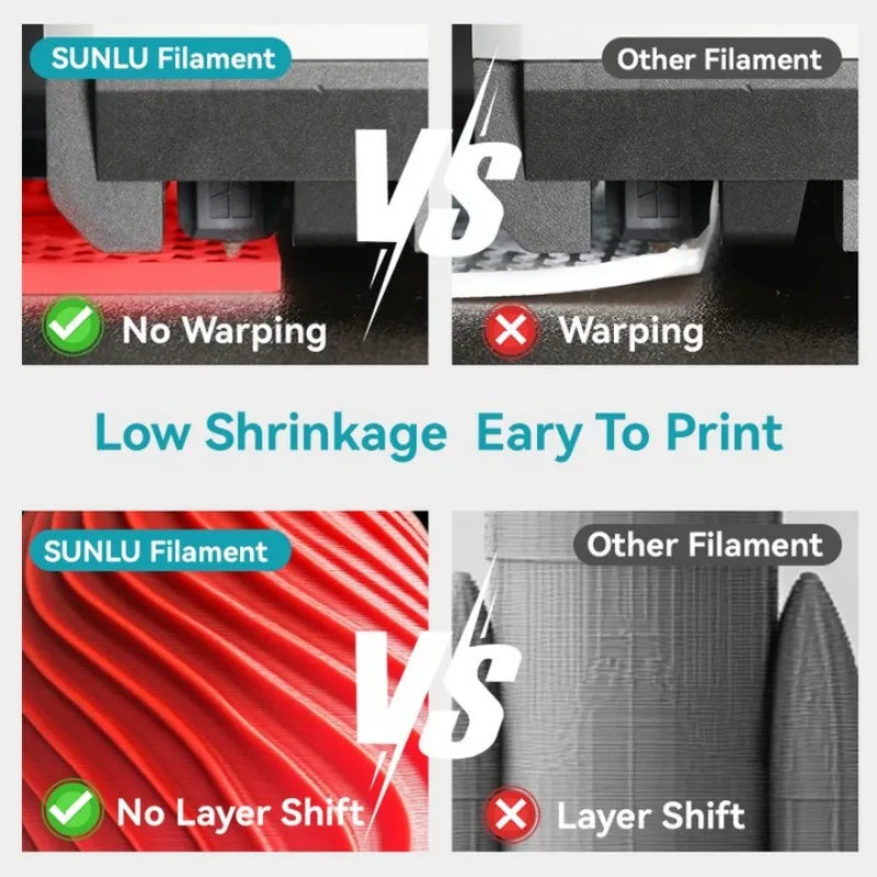 SUNLU High Speed PLA plus has a higher toughness than normal PLA Plus. Say goodbye to brittle filament. SUNLU PLA+ filament has high strength, excellent adhesion, lower shrinkage, no bubbles, no clogging.