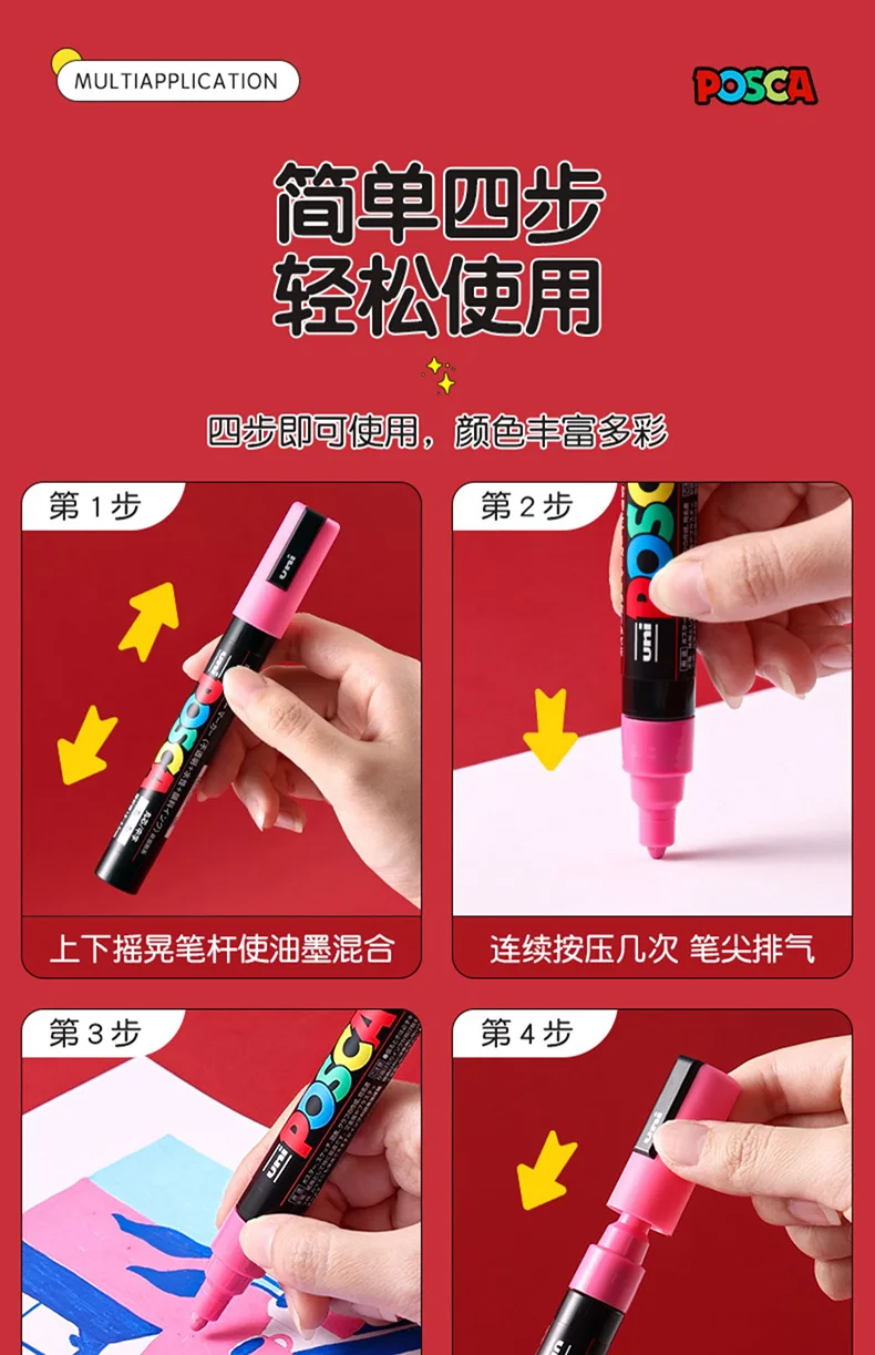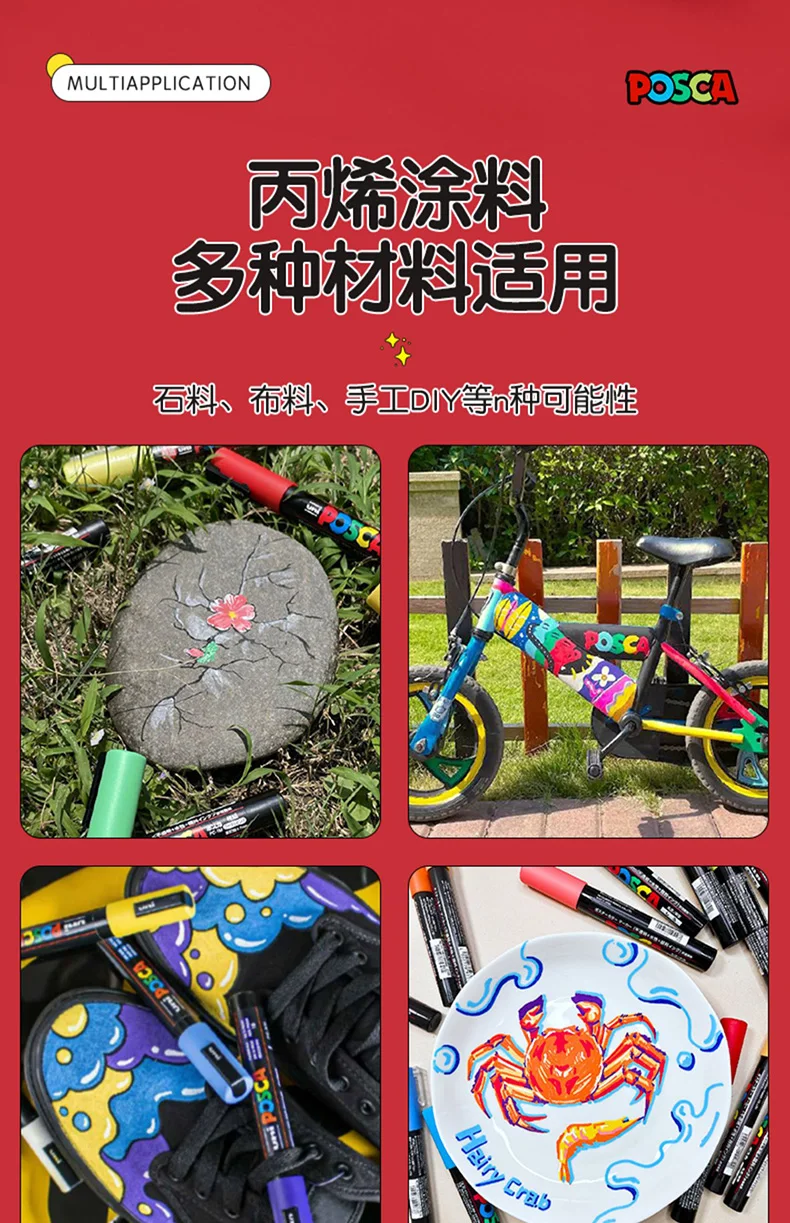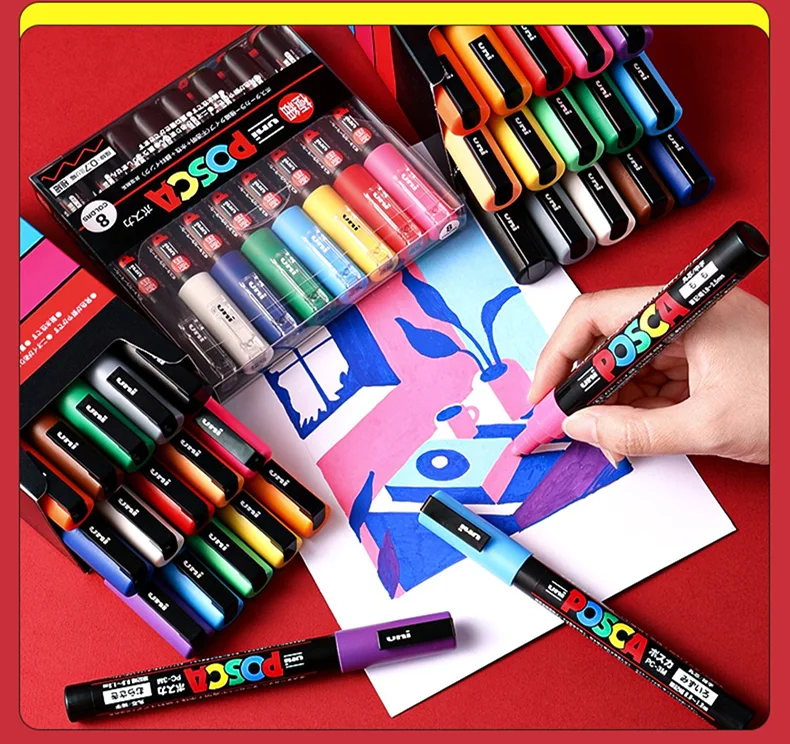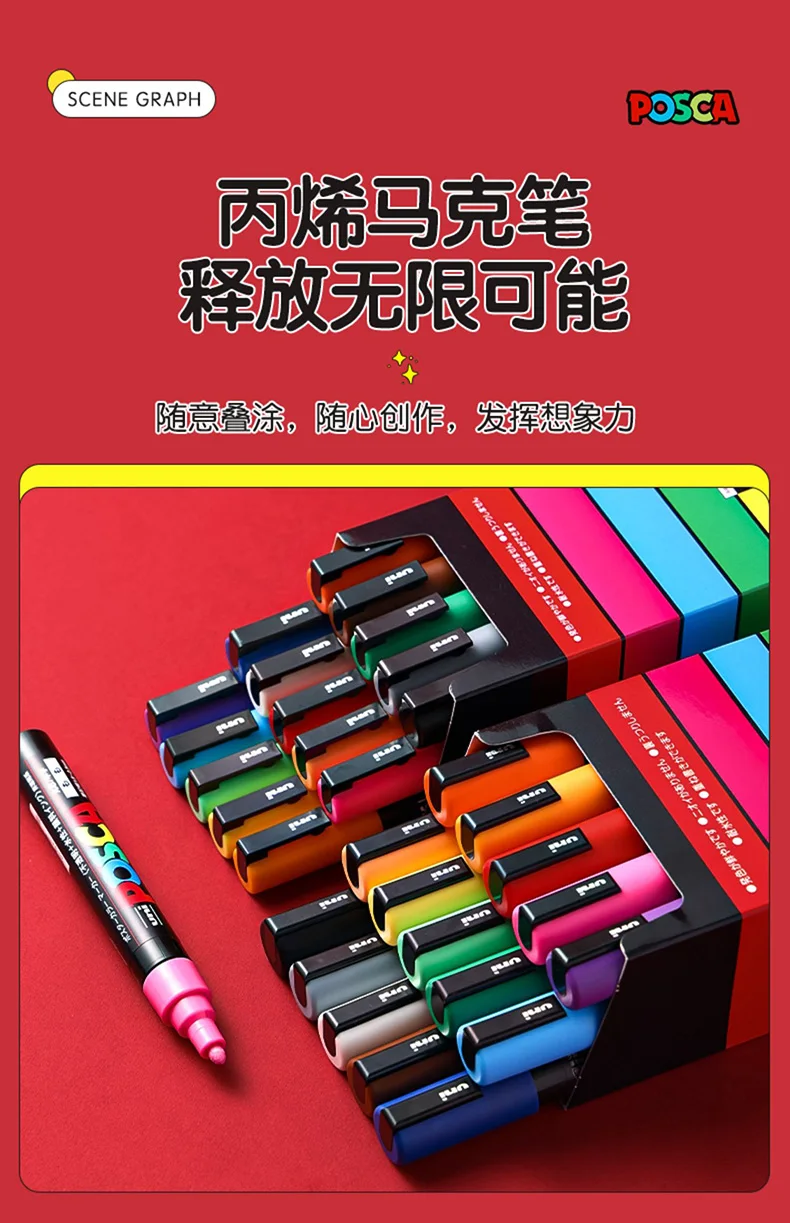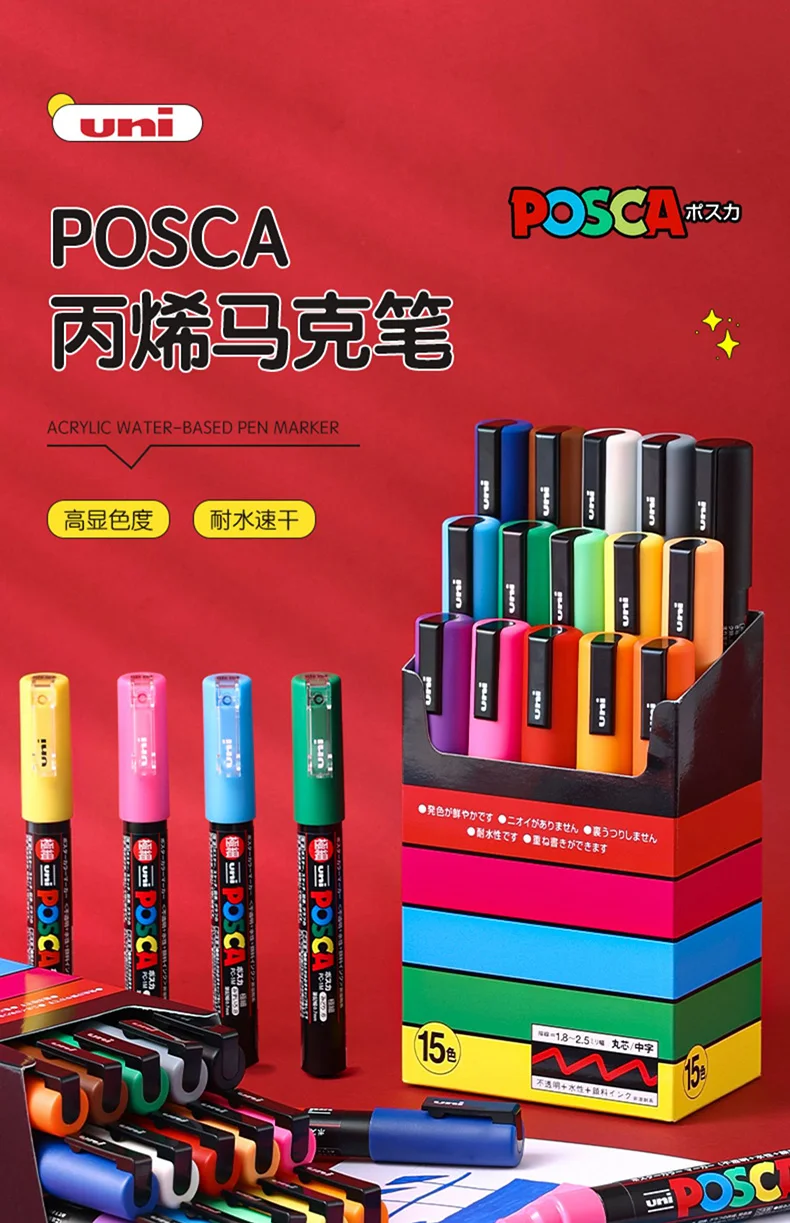 Uni Posca Acrylic Markers Set, 5/8/12/16pcs Marcadores Art Marker Pens for Rock Painting, Fabric, Graffiti Artists, Crafters and Manga